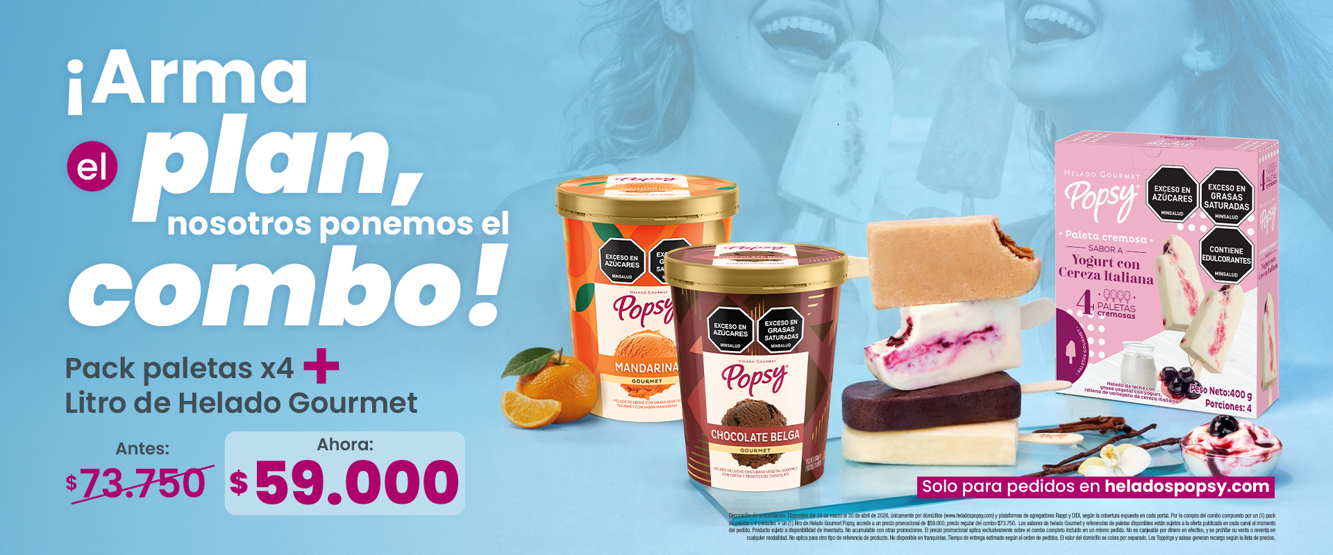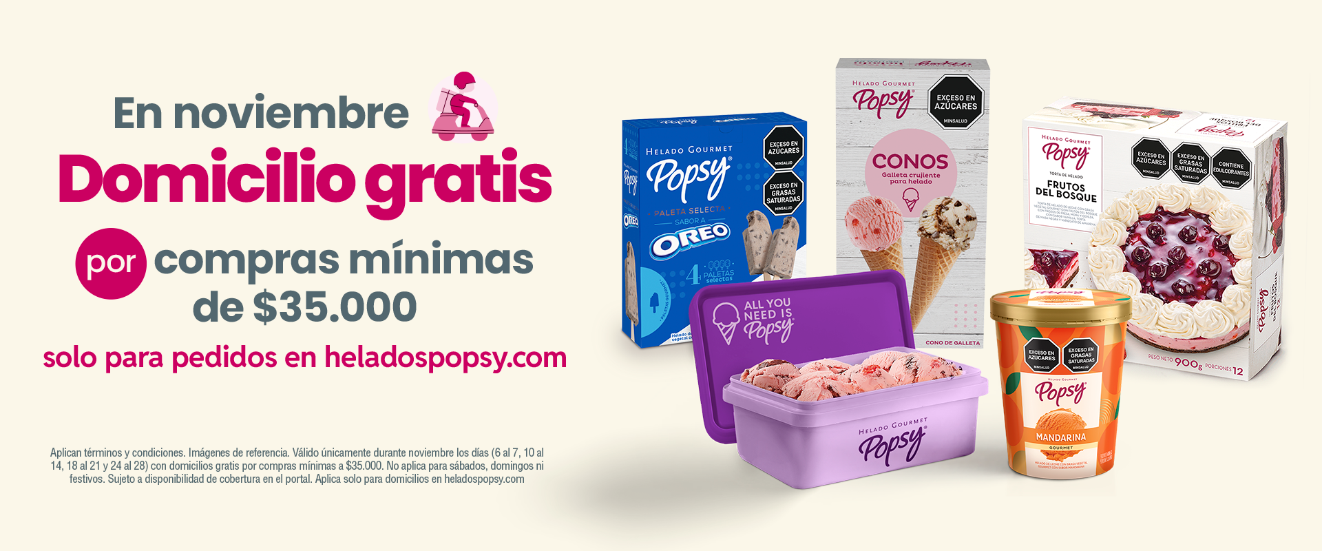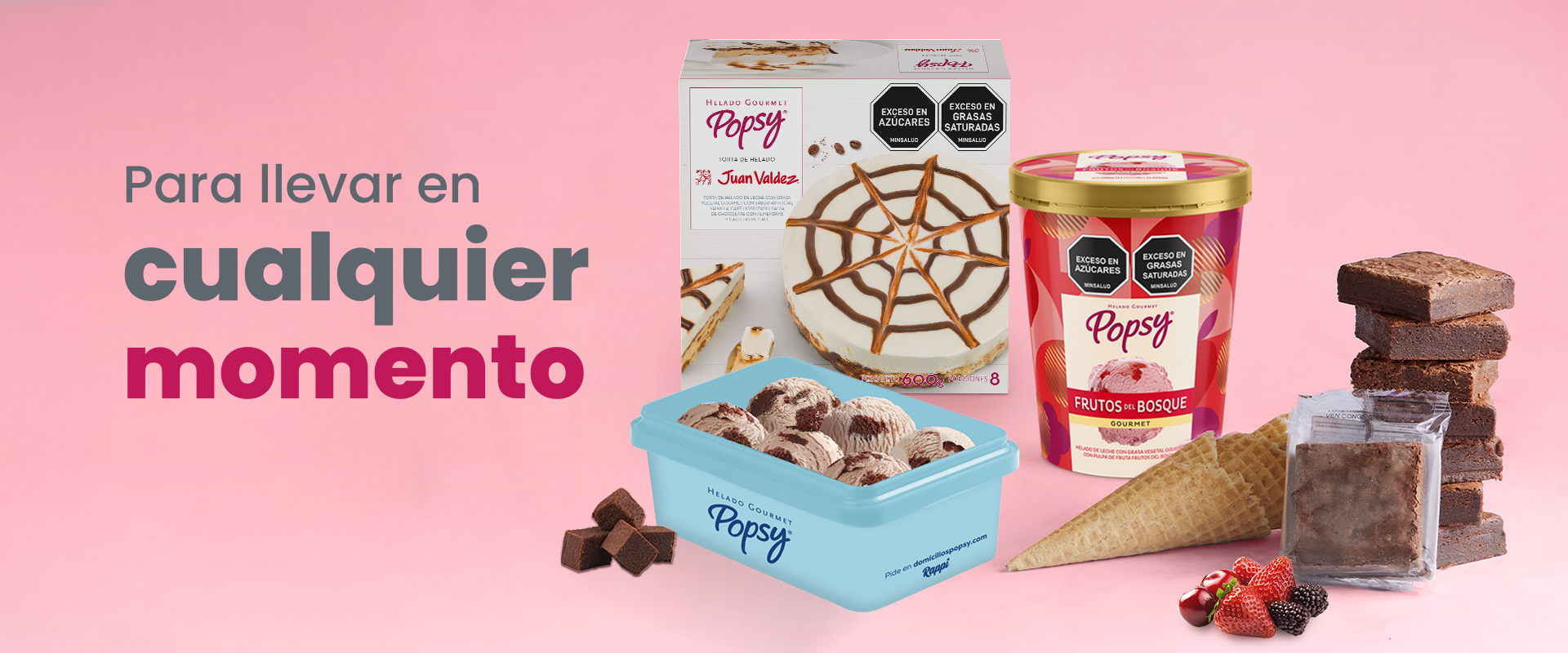 Lleva 2 litros de helado + paquete de brownies (8 und) + caja de conos (12 und)