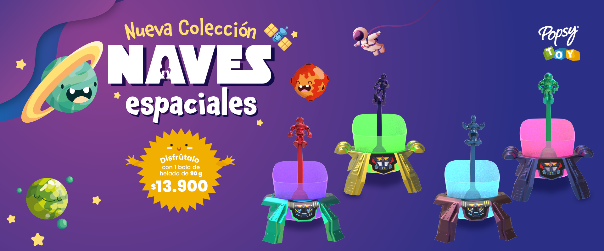 Combinación de banano con helado de hasta tres sabores de tu elección, con salsa de frutos y fresas, chantilly y cerezas.