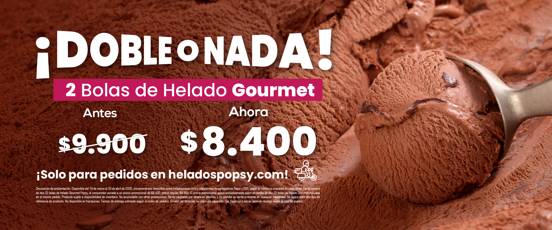 Lleva 1 litro de helado acompañado de nuestros deliciosos conos y 2 toppings a elección
