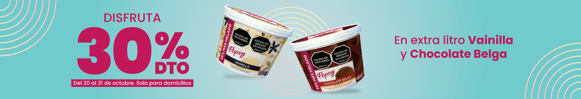 Por la compra de un litro o tarrina llevas otra tarrina con el 30% de descuento