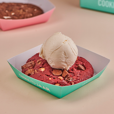 Galleta Roja con trozos de chocolate y chispas de chocolate blanco.