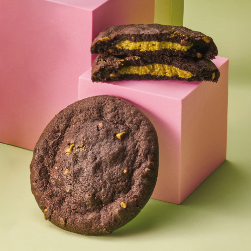 Galleta con chips de chocolate blanco y trozos de galleta de chocolate con crema.